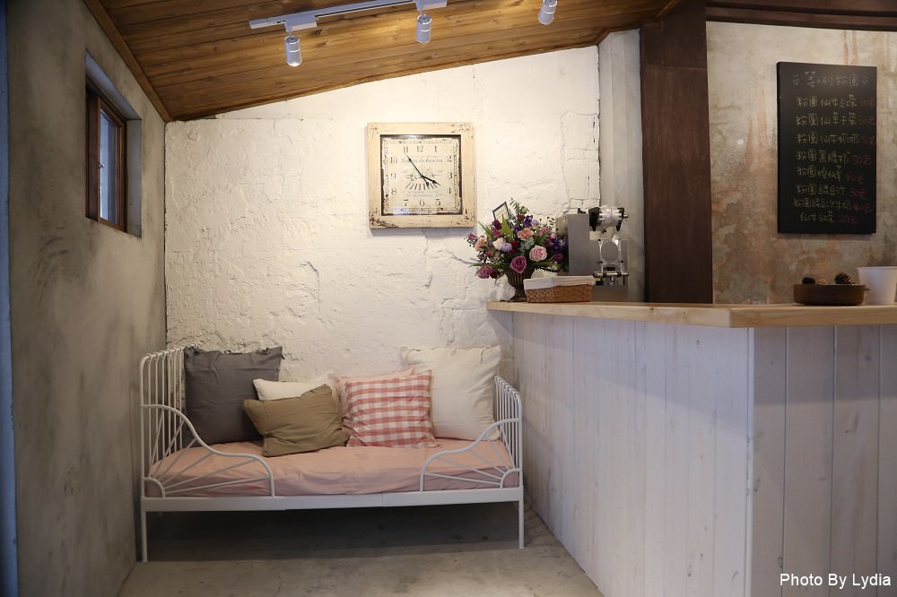 小巧思處處可見,像這一區擺設的小沙發跟後面斑駁的牆面,一整個就是慵懶風,呈現又是一種慢活的態度。