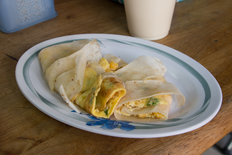 ◆ 玉米蛋餅 25 元蛋餅皮是早餐店常見的那種,火侯上並沒有特別煎至焦脆上色,蛋液中加了蔥花與玉米,比現比較一般。