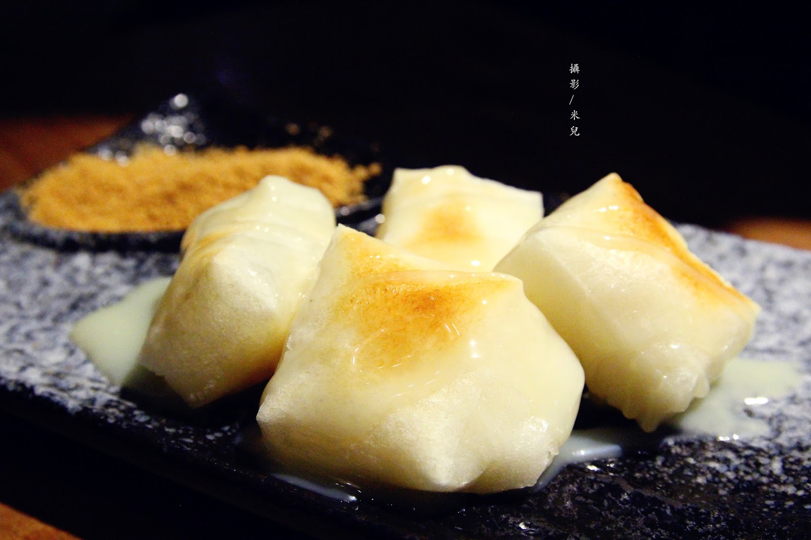 最後END當然要甜點啦!!!烤麻糬是不敗必點,除了淋上煉乳還要沾上花生粉,每個麻糬都烤的皮脆脆的之外,米香味很十足,好喜歡