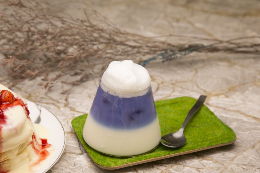 喝飲料也要很有氣氛~ 最上層的綿密奶泡如同富士山的皚皚白雪,中層藍紫色好似河口湖的清澈,完全激起少女的夢幻心啊~