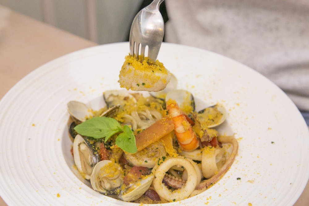 初榨橄欖油與義大利麵的結合,讓整體麵條在嘴中的口感更加滑順,也更能品嚐得到純粹的麵條原味