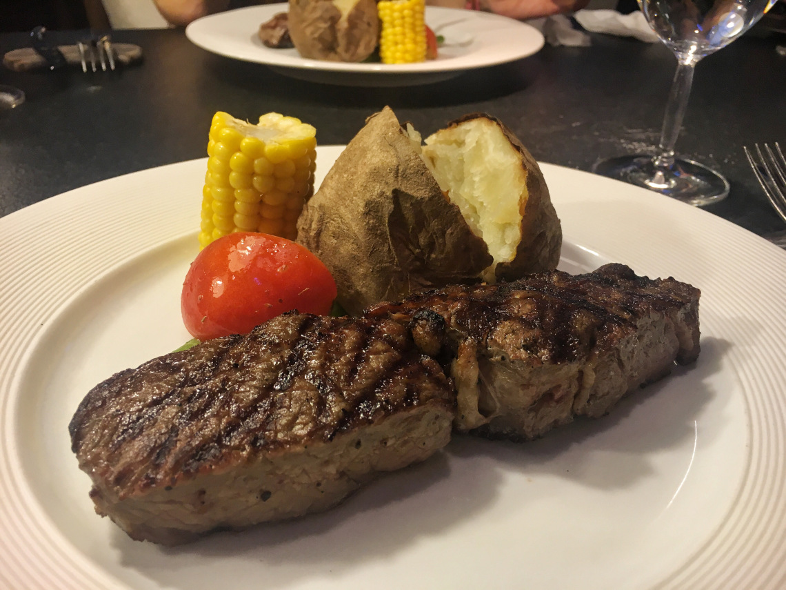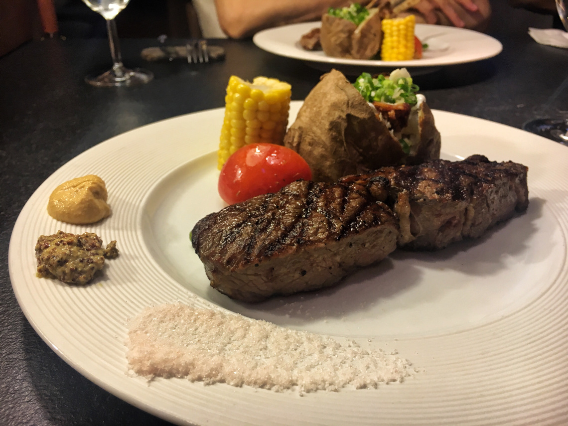 這天點了美國肋眼牛排 8 oz,自從看了《穿著Prada的惡魔》之後每次吃牛排都會情不自禁的選擇肋眼,因為小安的機車上司米蘭達午餐總吃油滋滋的肋眼牛排(還不會胖)