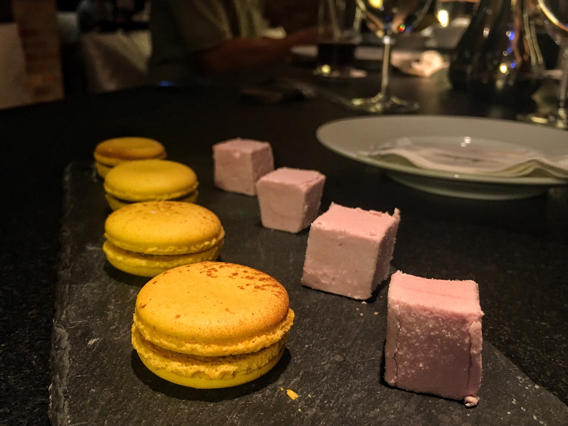除了自助吧甜點之外還會送上餐後馬卡龍與軟糖,送上的馬卡龍比自助吧的更脆皮,橙香的口味也算精緻特別,每桌口味不盡相同,