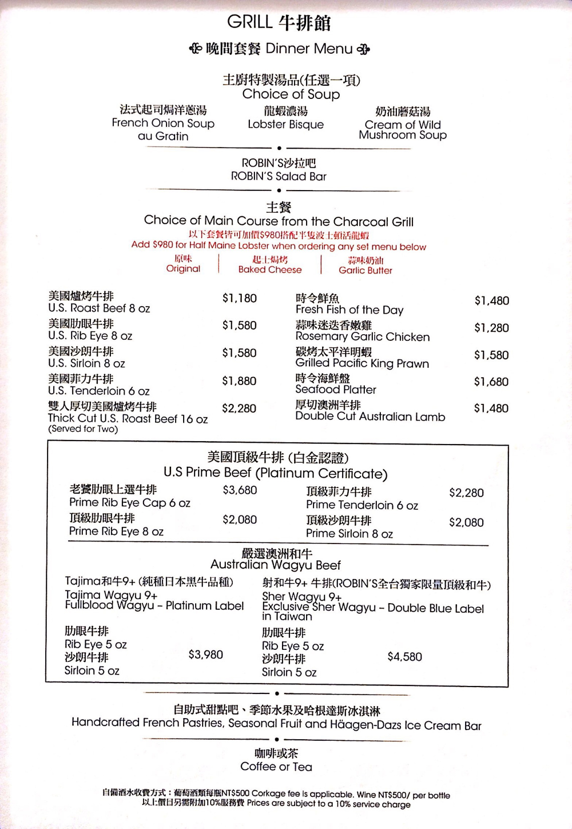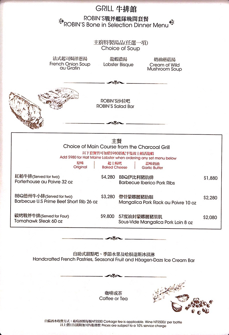 自己覺得這次的附餐普通,主餐不錯,甜點以自助吧而言在水準之上,與價錢搭起來CP值很高~菜單上還有其他更厲害的肉品可以選擇,那就等爸爸哪天投資得利再來好了!(爸爸加油)