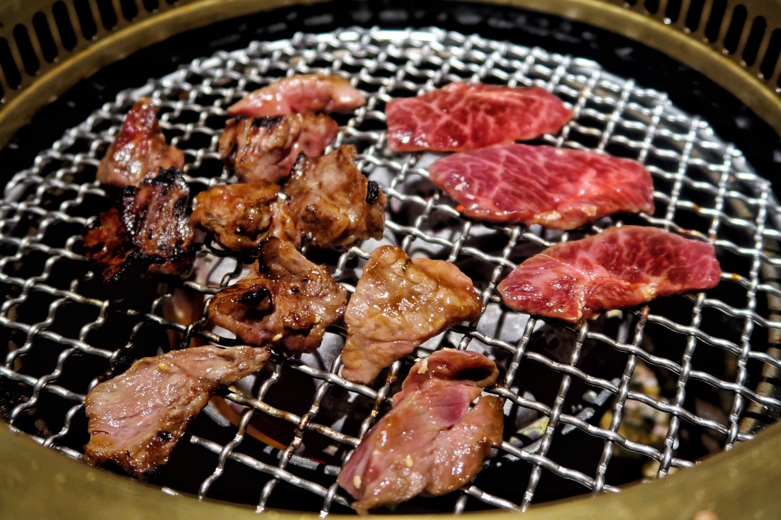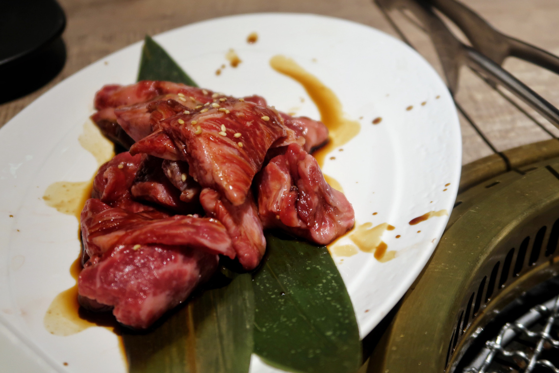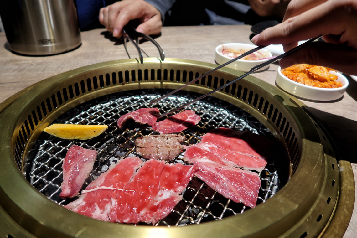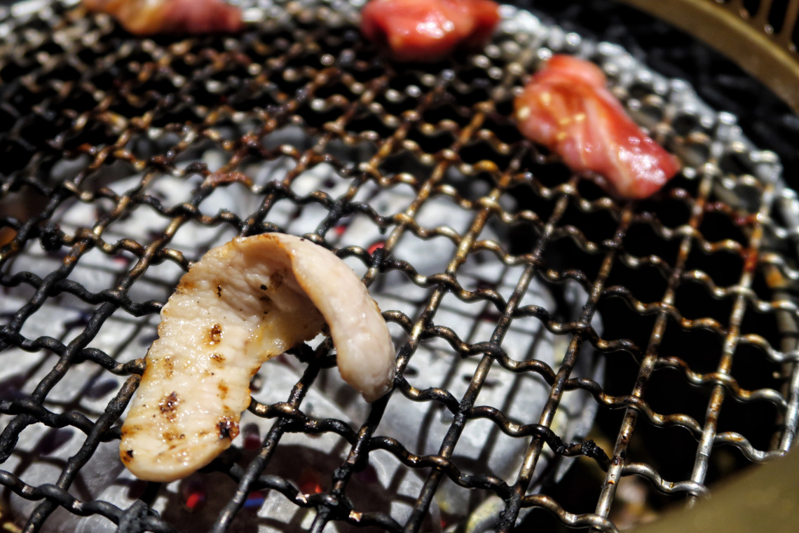 因為快要打烊了所以店員幫忙烤一些,自己掌握好熟度的話也會很好吃的,厚度、面積都很驚人的牛肉片幾乎無法一口吃完,好療癒~