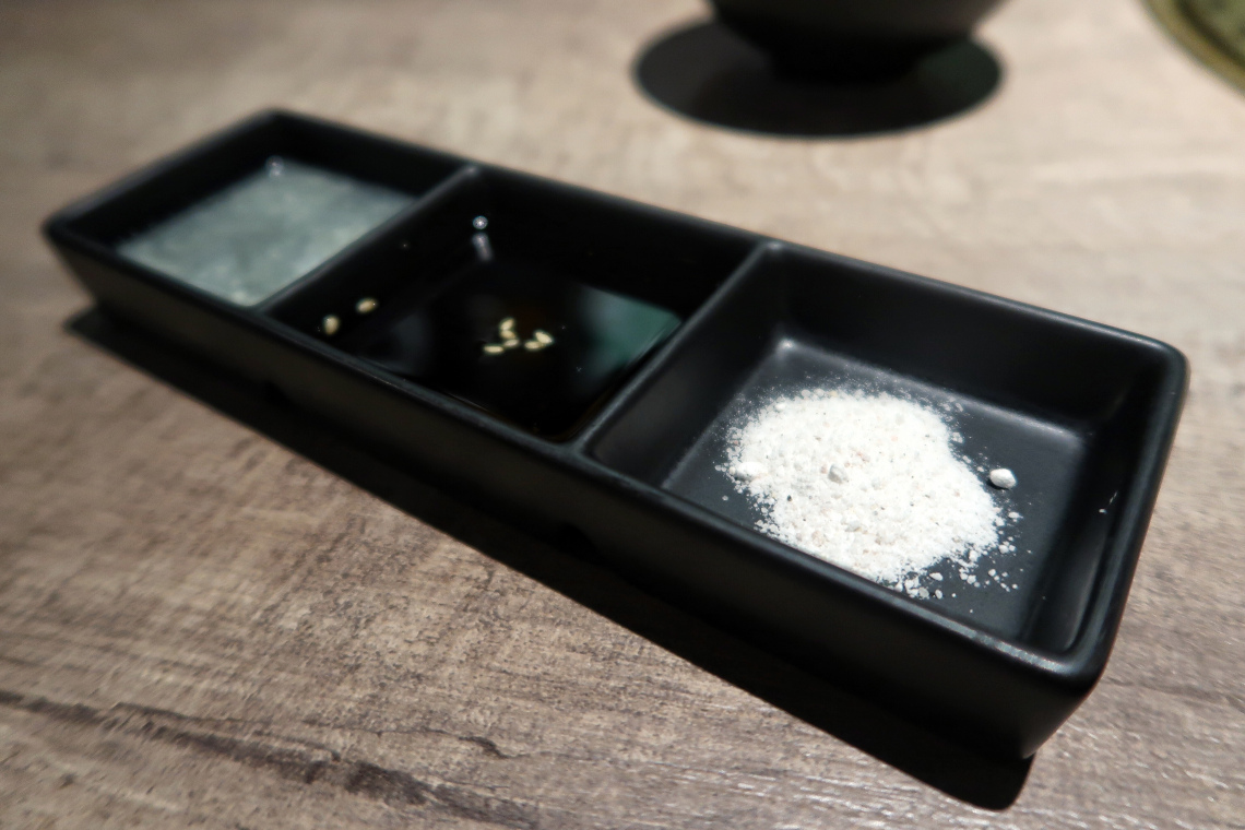 沾醬(左至右):檸檬汁、水果醋醬油、鹽