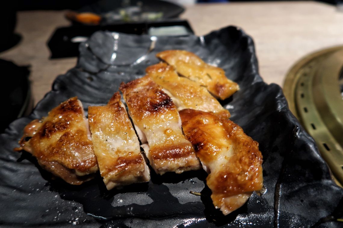 唯一一道已經烤好的肉類很快就送上,牛肉片還沒烤好之前不會餓到昏頭,皮有脆肉也有嫩~