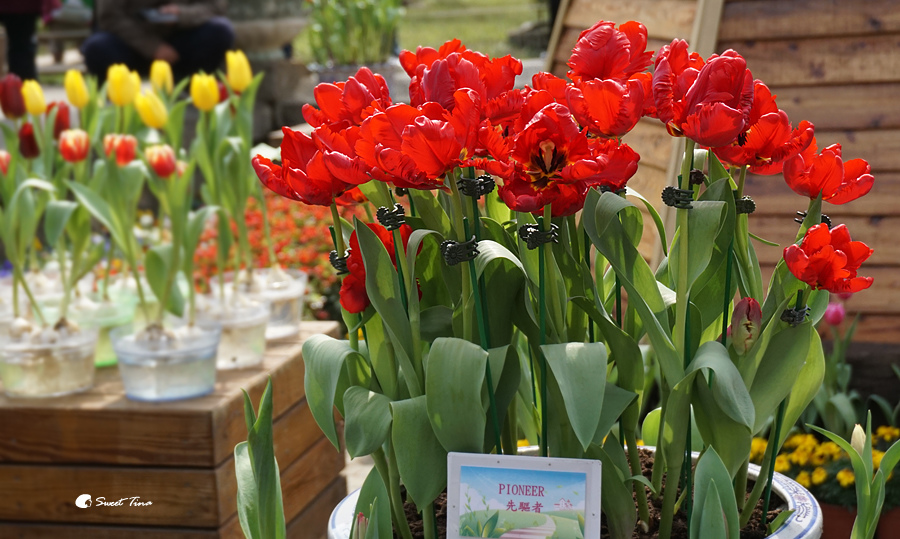 如想帶些鬱金香回家的話,一旁也有小市集,這邊有提供水耕鬱金香,只要插至花瓶就可以讓家中美美的,雖然維持的時間不長,但春節期間是沒問題的。