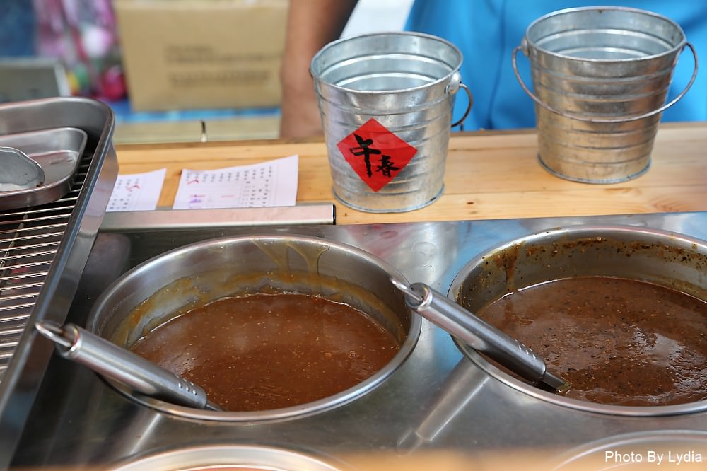 炸好的黑輪米血會再淋上客人指定的醬料,這裡的醬料有黑胡椒醬跟花雕醬兩種可以選擇。