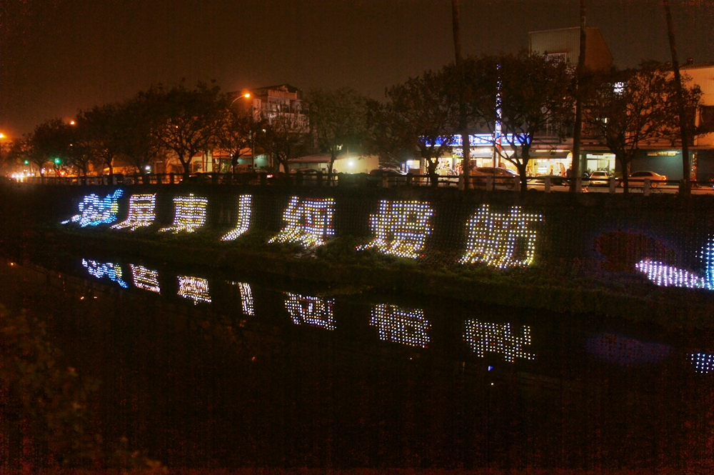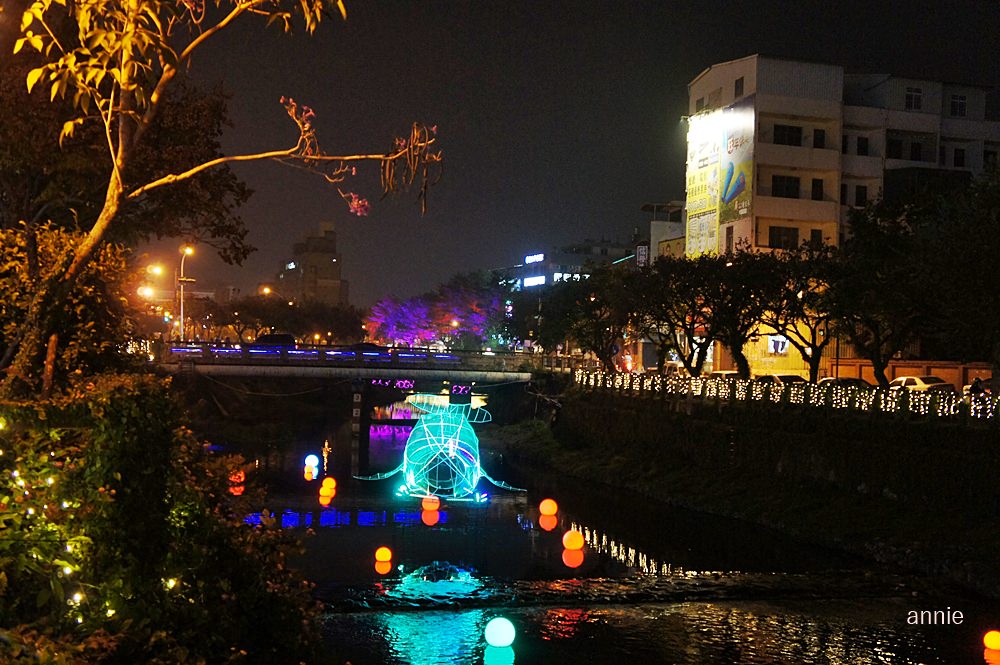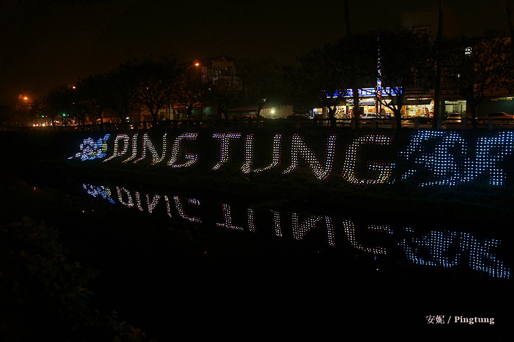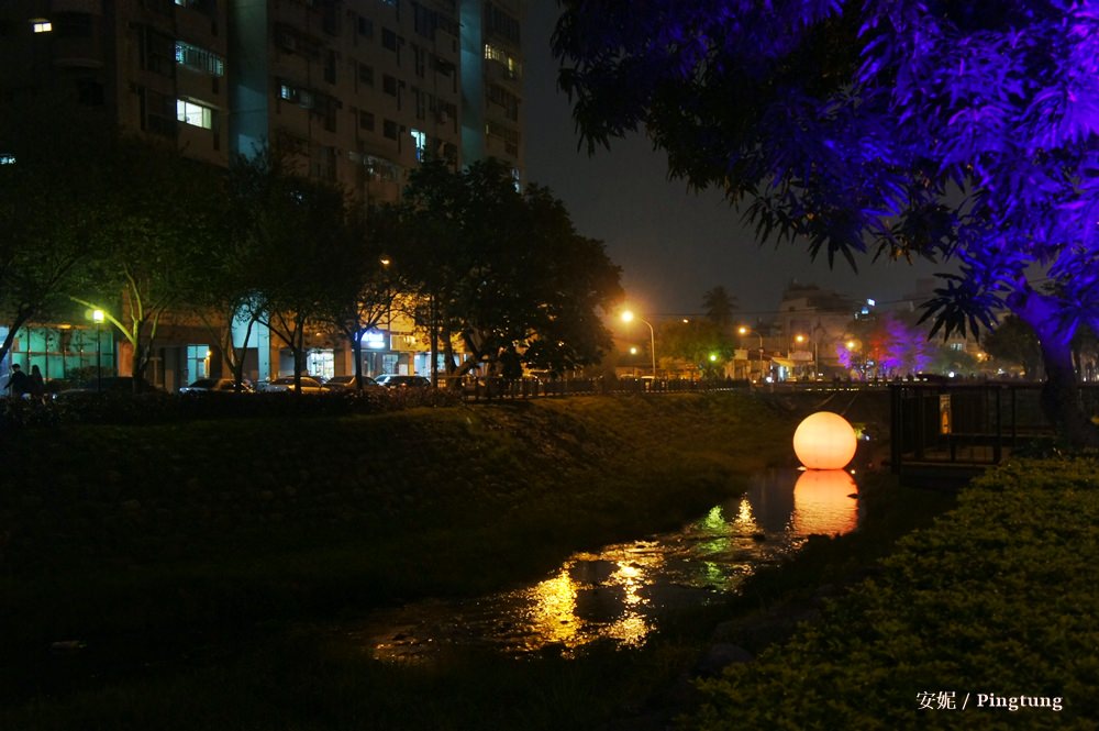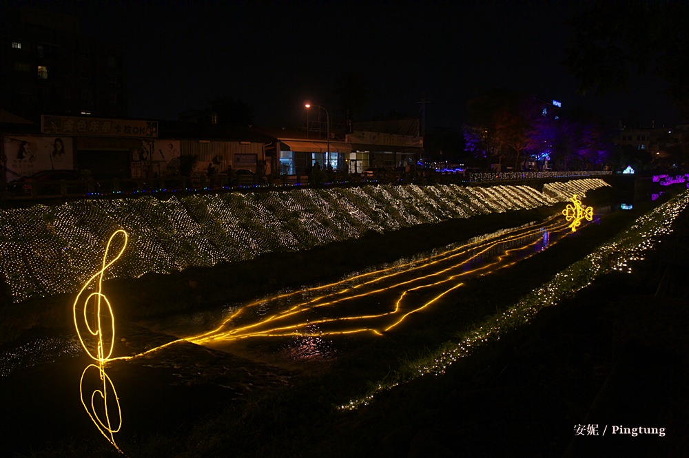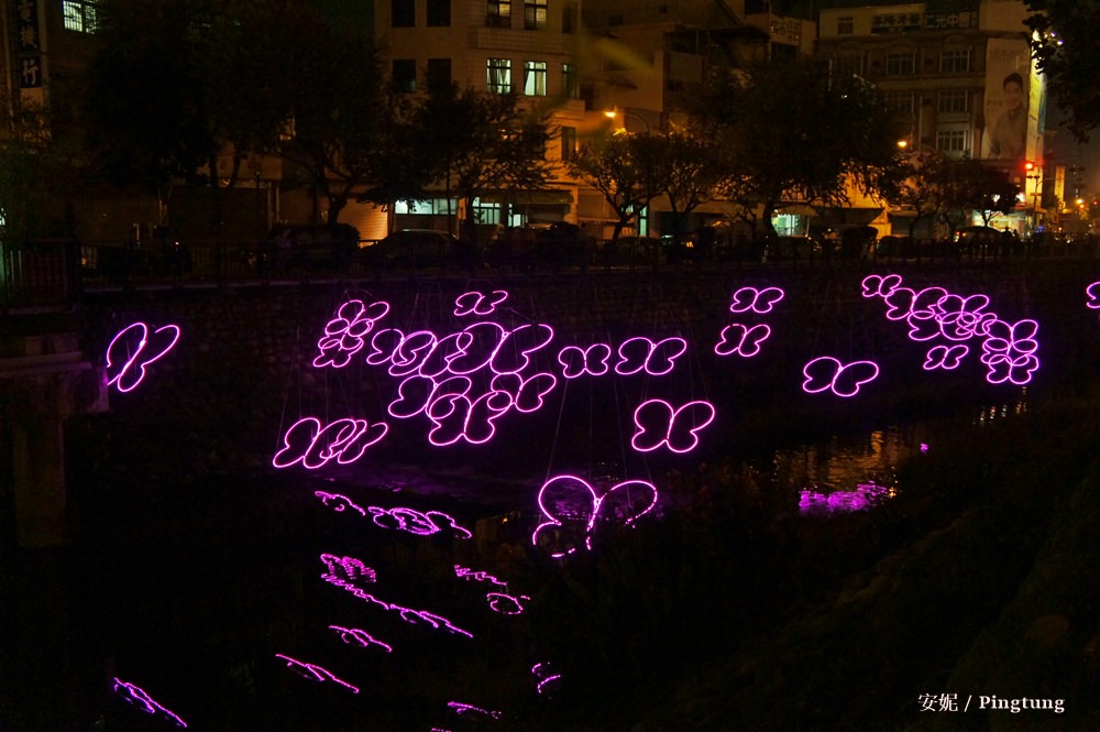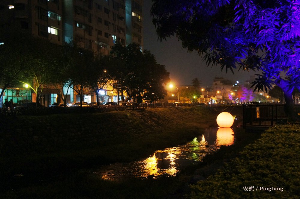 萬年溪最美的一段我會投給位於民生路這段的[飛躍屏東],數十隻海豚飛躍在寶藍色的燈海上,特別的是湖面的倒影,整片寶藍色的燈海壯觀極了,隨著燈光的變換,海豚們彷彿飛躍而起,十分浪漫。