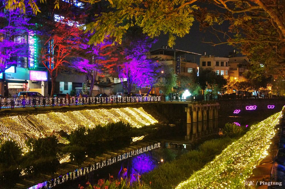 屏東千禧公園勝利東路開始,綵燈節順著萬年溪河畔到民生路