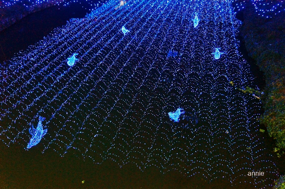 這一段的燈海是我最喜歡的一區,陪我一起逛的國中同學也說每天從這裡下班回家,總會不自覺多停留一下,欣賞這絕美藍色燈海。
