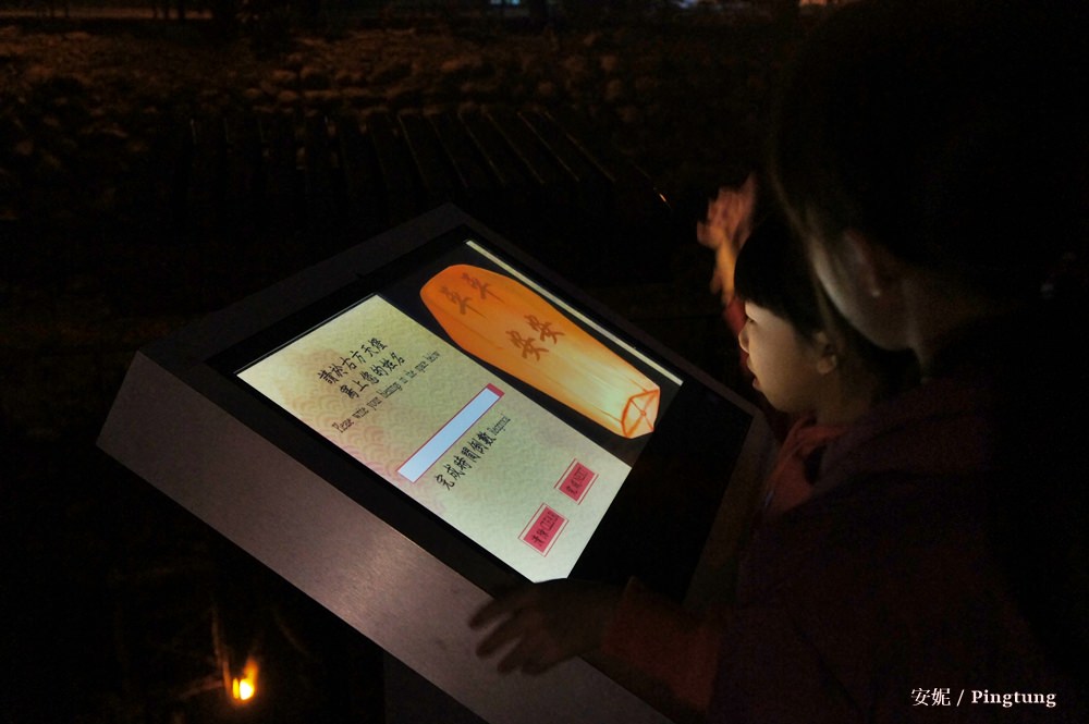 這個天燈設計也相當特別,只要在機器上選擇天燈造型以及輸入你的名字,屬於你的祝福天燈就會冉冉上升,看到自己的天燈上升的那一瞬間真的會莫名感動啊。