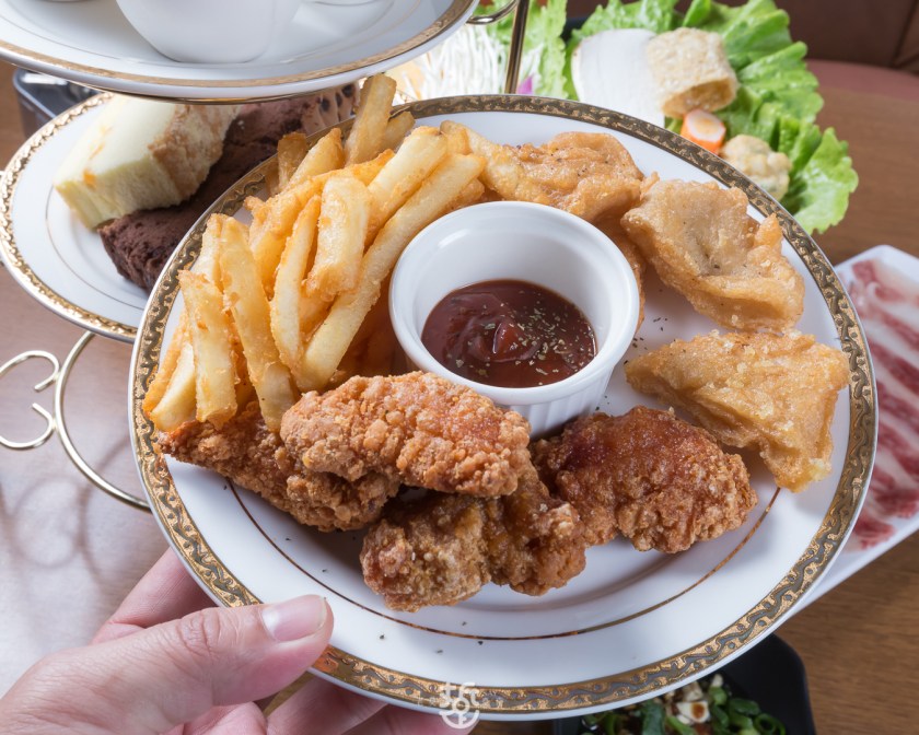 餐後當然要吃甜點,甜點是女生的另一個胃,只要同行點四鍋,再送下午茶組合。時光秘境下午茶組合包含炸物、蛋糕盤,以及茉莉花茶凍。