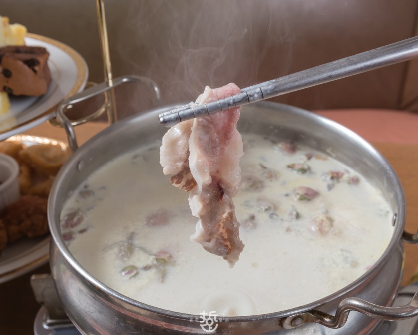 這鍋特色是用純鮮奶代替高湯,加入進口食用的小玫瑰,照著上述的步驟煮鍋,就可嘗到濃郁的奶香以及淡雅的的玫瑰花香氣。說它是花茶牛奶鍋一點也不為過,多喝幾口也不會膩口與苦澀。