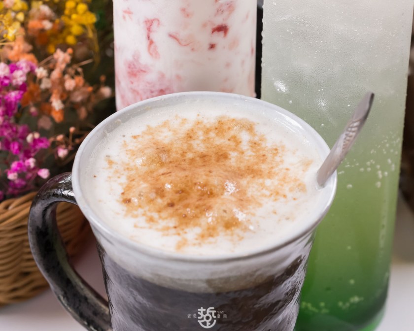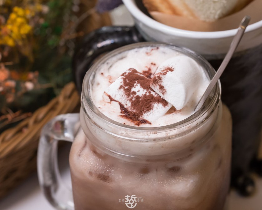附贈2杯25元飲料,加價可升級其他飲品,我們點了一杯冰的可可棉花糖與熱的黑糖拿鐵。