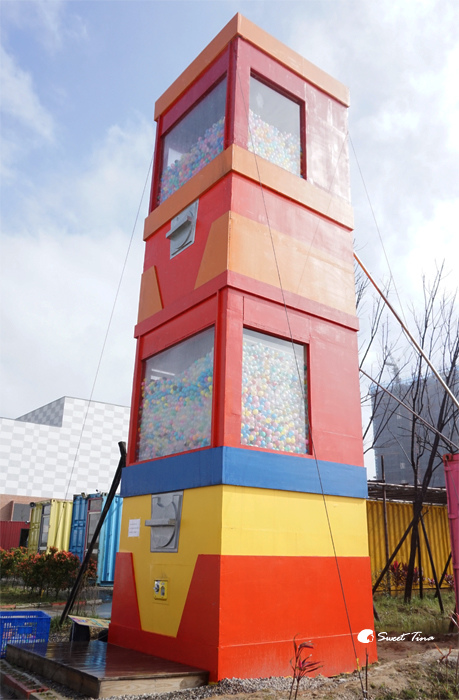 玩好也集滿章了,我們就去換大型扭蛋機的代幣啦,換好後還可以拿汽球呢。