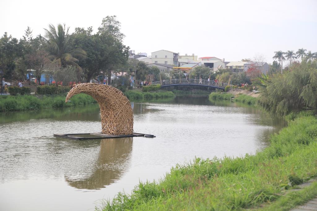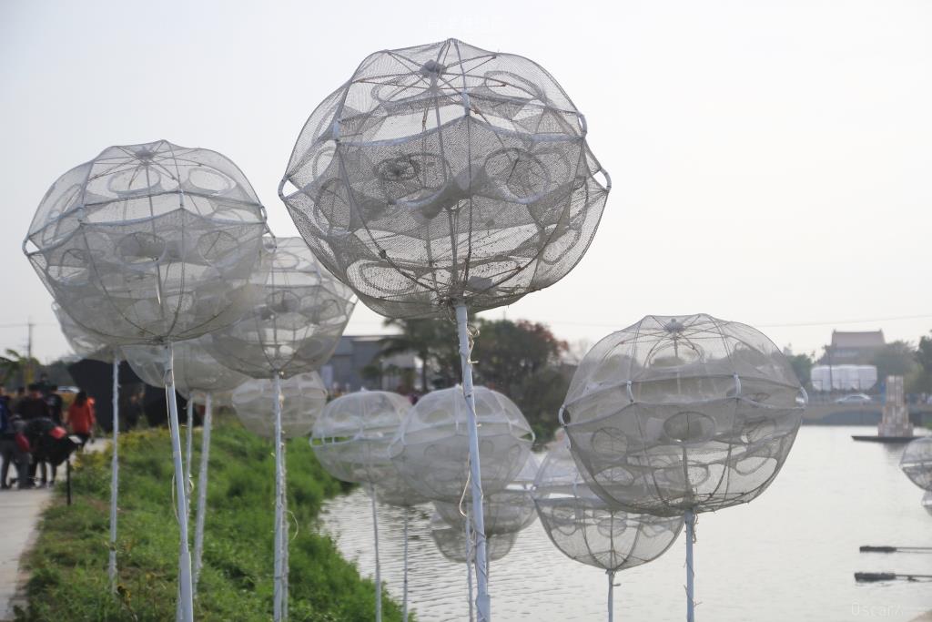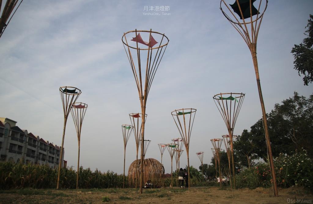 一座座在高空中發散的竹製作品 正是設計團隊以鹽水在地的蜂炮為意象而設立