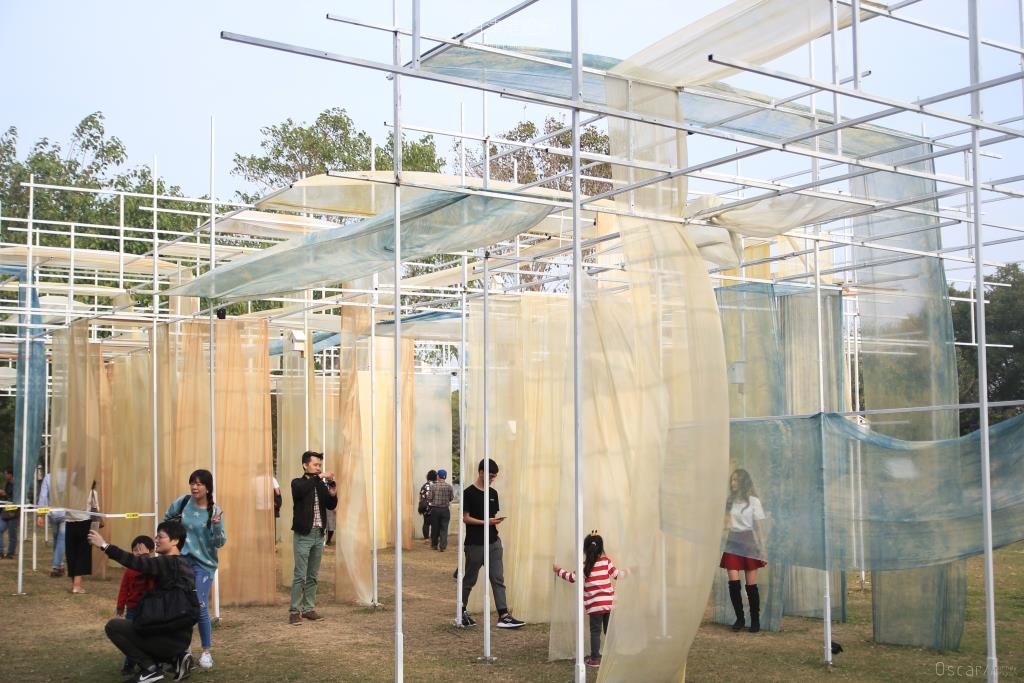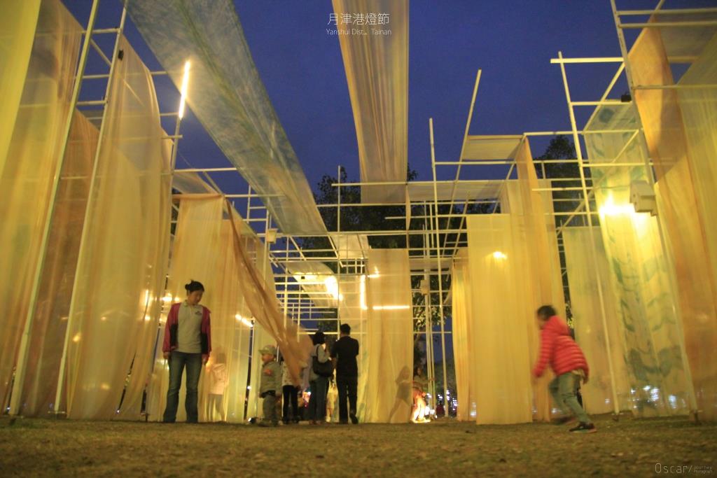 團隊以植物染的布幔 燈光與輕結構打造這件作品
