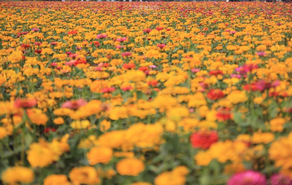 在主燈區尾端旁的廣大休耕農地上 生長著整片的百日草花海