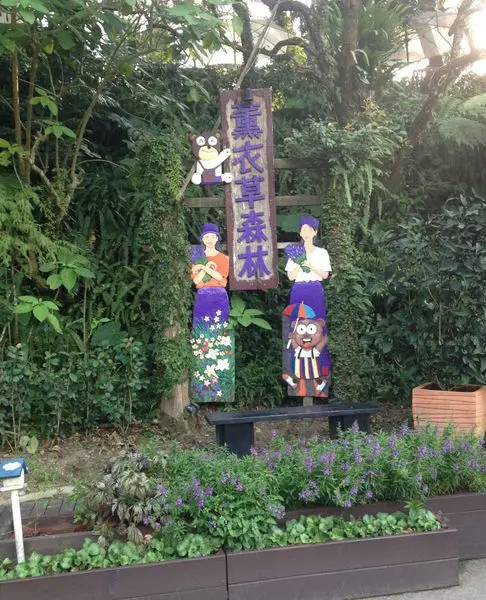七里香玫瑰森林其實是個免費的觀光工廠,小客車在離園區100M左右的專用停車場(也是無料的)停妥後,一路延著路邊慢慢步行到園區,一進入園區,馬上就看到老蕭的雅聞看板及主建築的玫瑰故事館