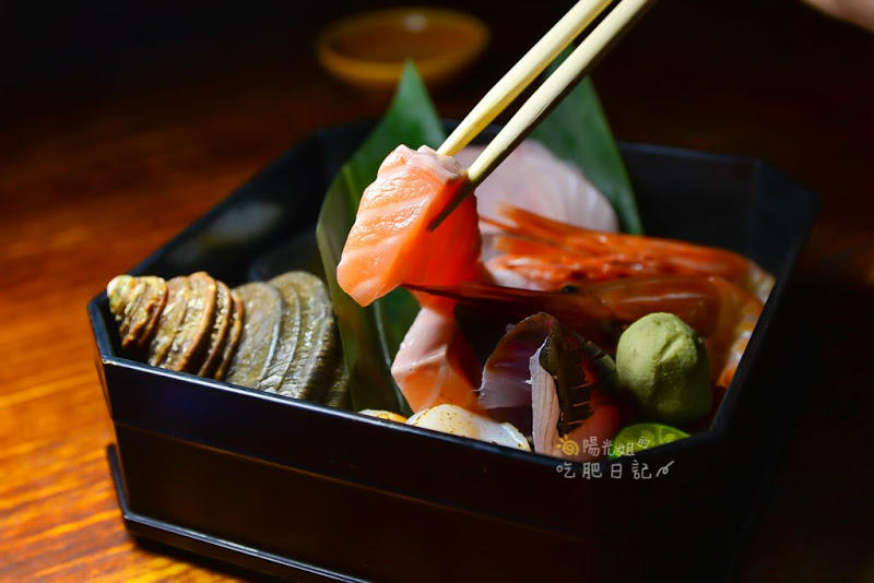 刺身很新鮮,除了好看,入口更美味,鮭魚軟嫩又甜,紅甘口感綿稠帶點彈性,牡丹蝦軟甜,炙燒干貝外層焦香內層軟嫩,醃漬的鯖魚帶一點點鯖魚獨特的氣味,吃起來不會讓人覺得怕怕的,反而呈現出淡淡的清香。