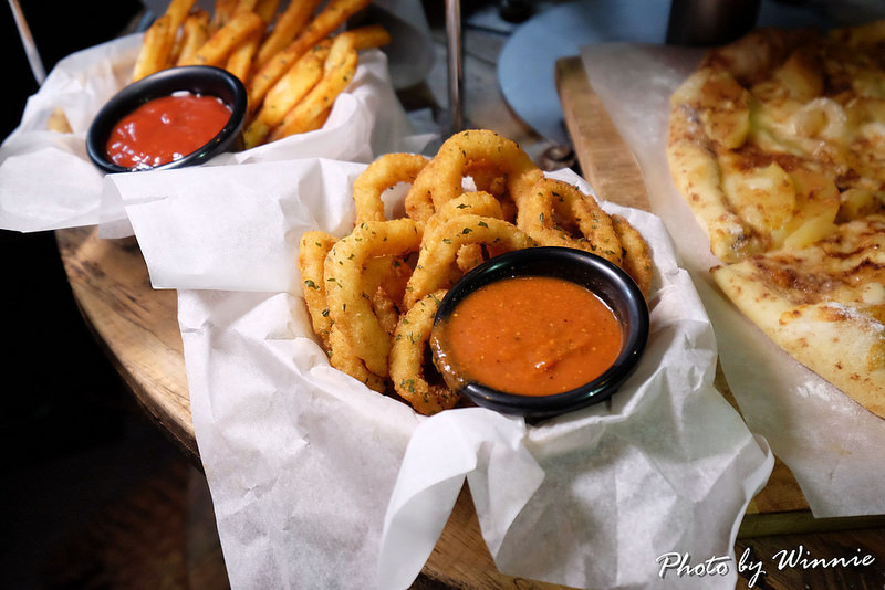 ▲除此之外再等候披薩的同時,大家也可以先點些開胃菜小物來墊墊肚子搭配酒,例如「黃金脆薯」及「黃金炸花枝」兩種也都是配酒的開胃菜。比較屬於厚實型的黃金脆薯外酥內嫩,份量也不少,而黃金炸花枝則是吃得到彈牙的花枝新鮮度,表現的也是可圈可點。 (飲酒不開車,開車不喝酒,未成年請勿飲酒)