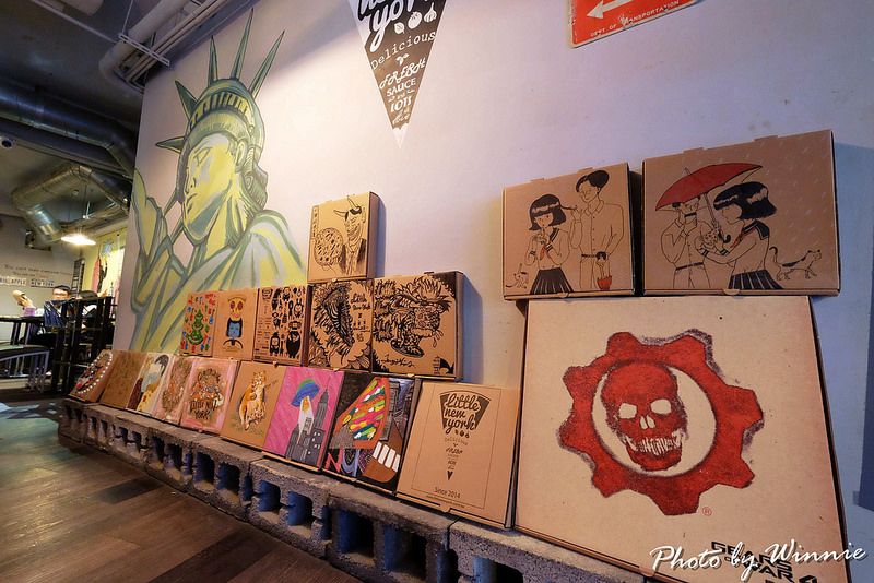 ▲先來看看這些塗鴉的披薩盒既是店家的藝術陳列作品,也是一種另類的收藏品,各式各類的畫風作品也讓人有種進到藝術畫廊看展的錯覺,如果大家也有興趣創作披薩盒的話也可以與店家聯繫,他們也會很歡迎唷!!