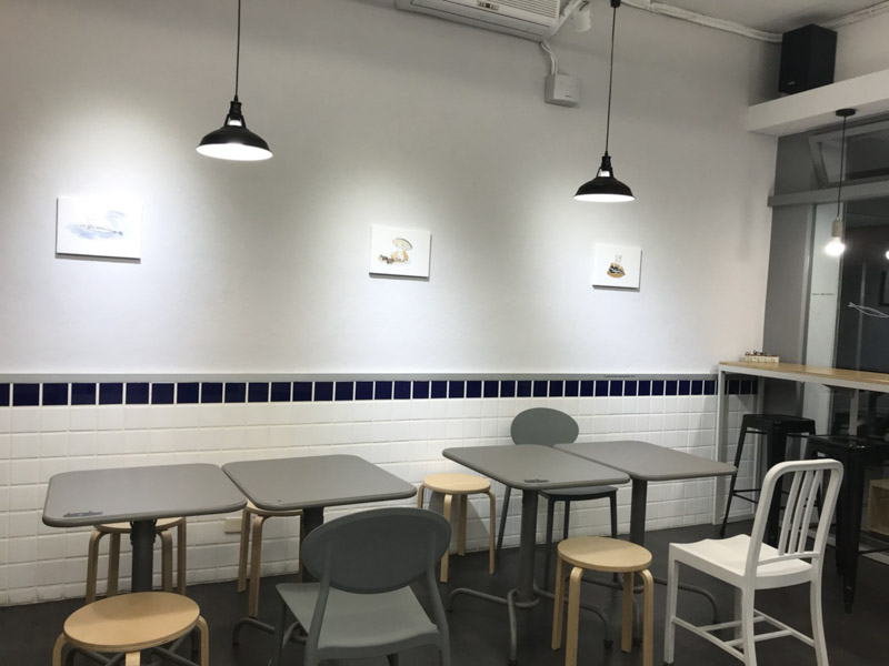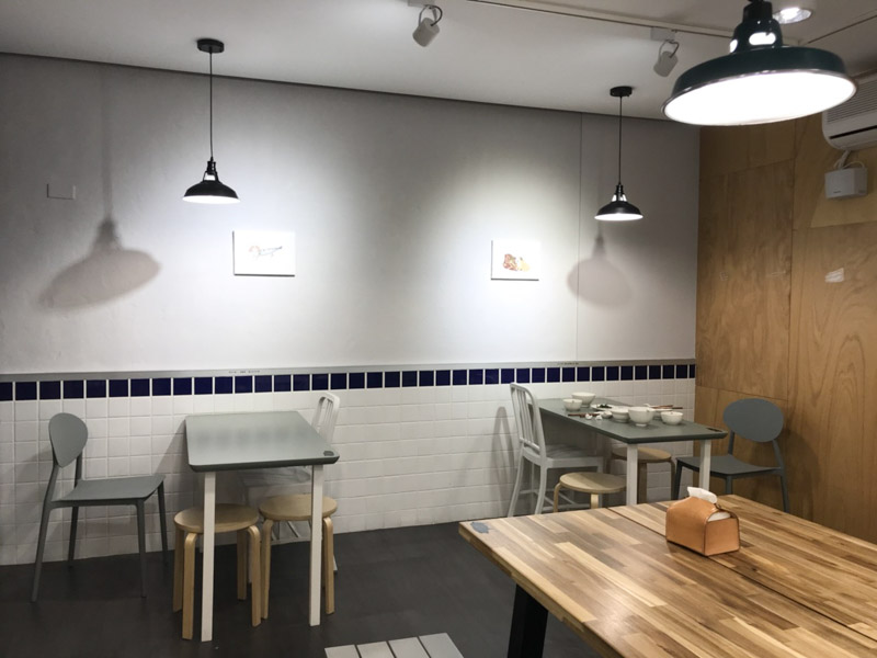 肉麻裝潢線條色彩分明,潔淨清明卻又有著一言難以說盡的設計巧思,牆上除了有可愛的插畫,更能在不同的桌角、壁緣找到一些幽默到不行的「幹話」。