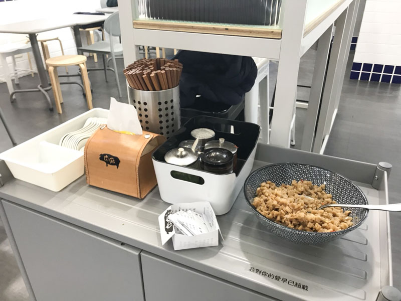 店內的碗筷採自助式取用,一旁還有一大碗招牌蘿蔔乾可以自行取用喔。