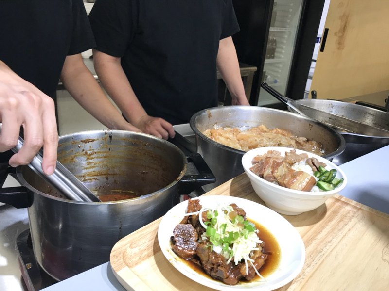 肉麻採半開放式的廚房,出餐口就是一整個吧檯,客人要是一多起來,連吧檯上的燒肉飯們都是得排隊出場的