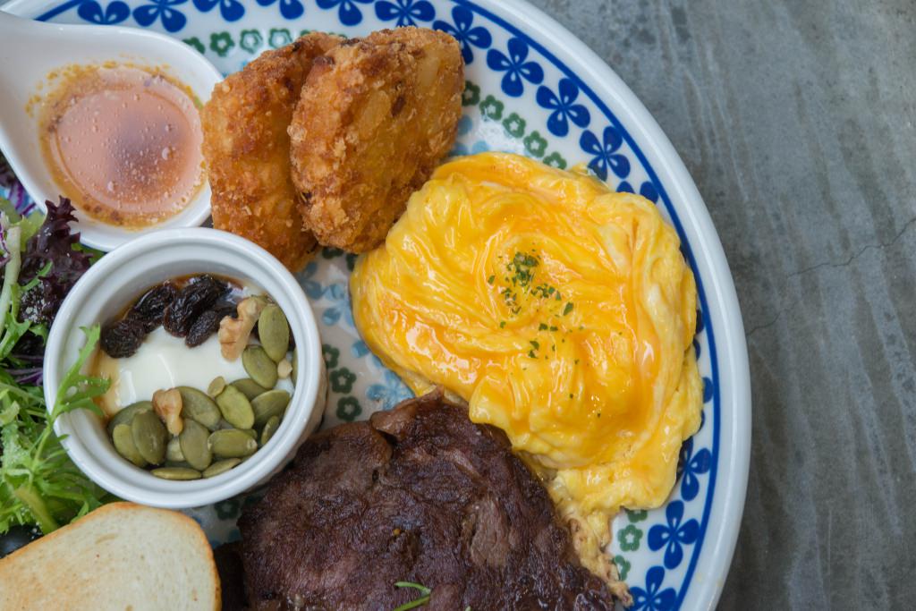 早午餐基本副餐有歐姆蛋搭配薯餅 油醋沙拉
