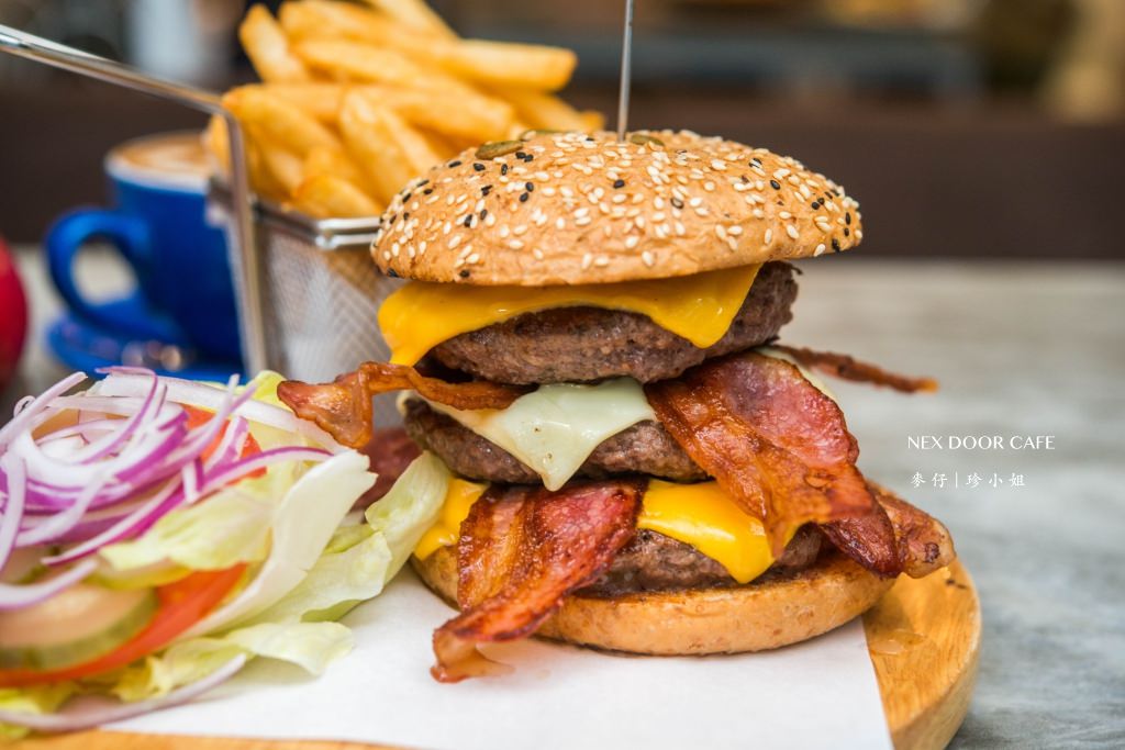 三層的手打漢堡肉(牛)再搭配兩款起司