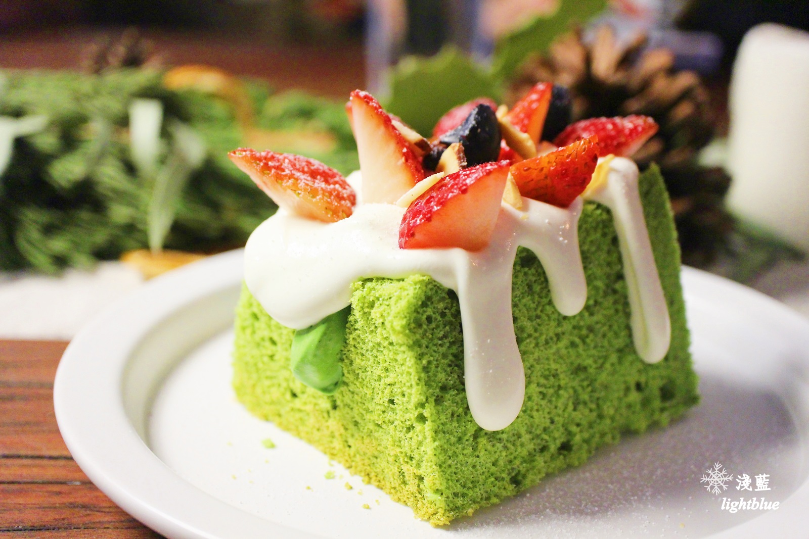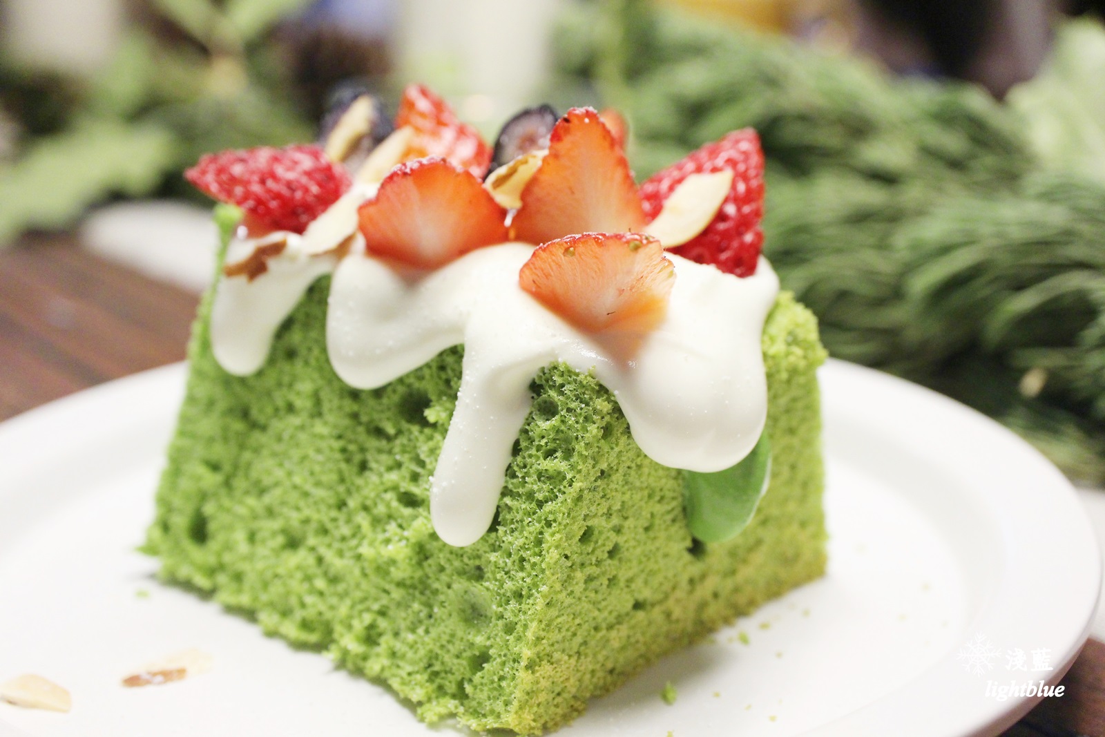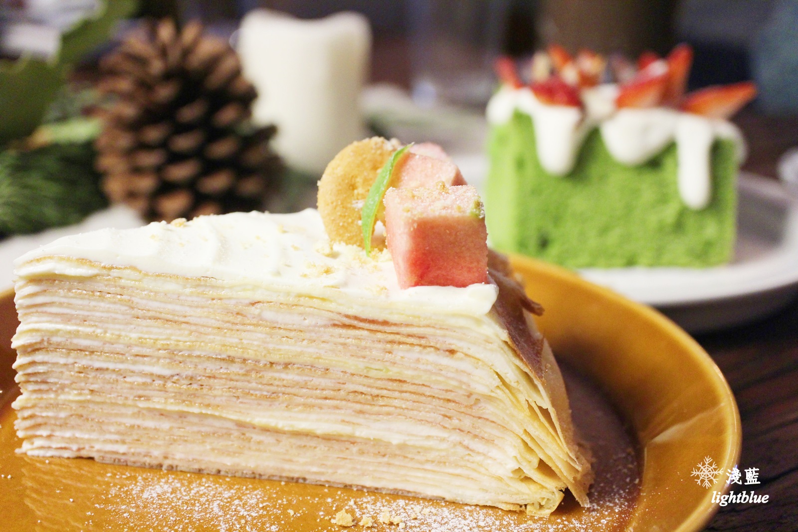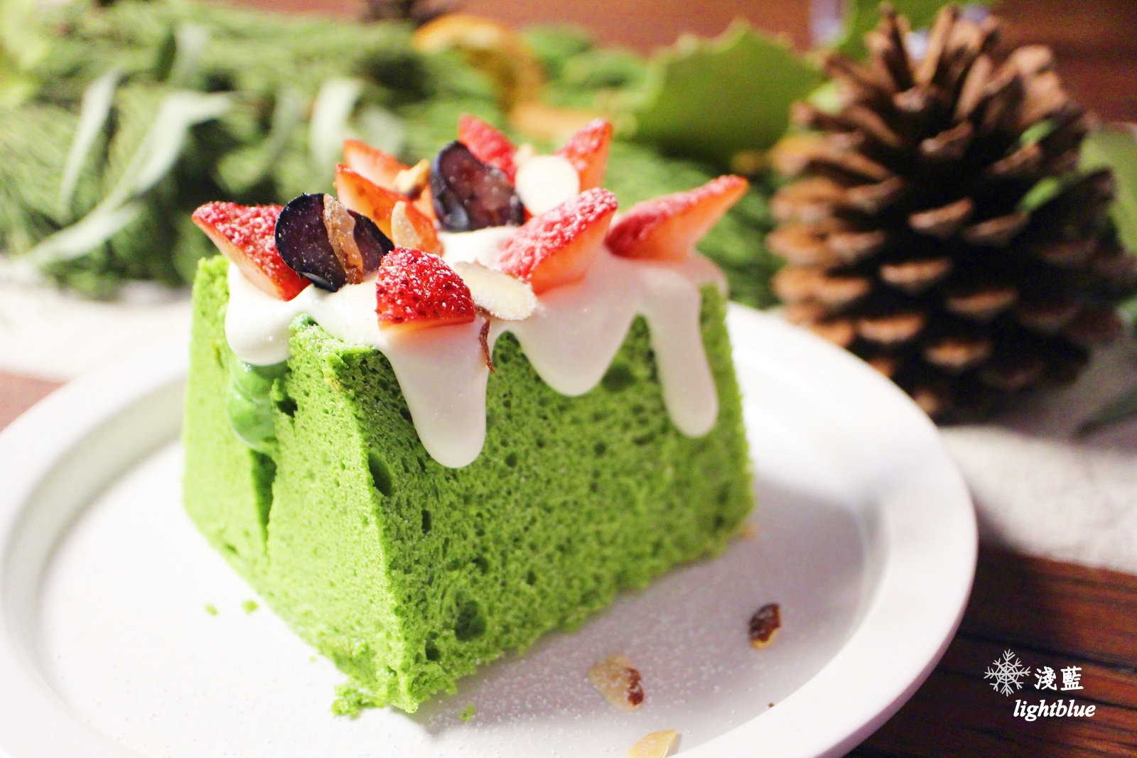抹茶戚風蛋糕本身僅有淡淡抹茶味,不過抹茶醬則濃郁而低糖,讓人眼睛一亮,吃起來頗有層次感