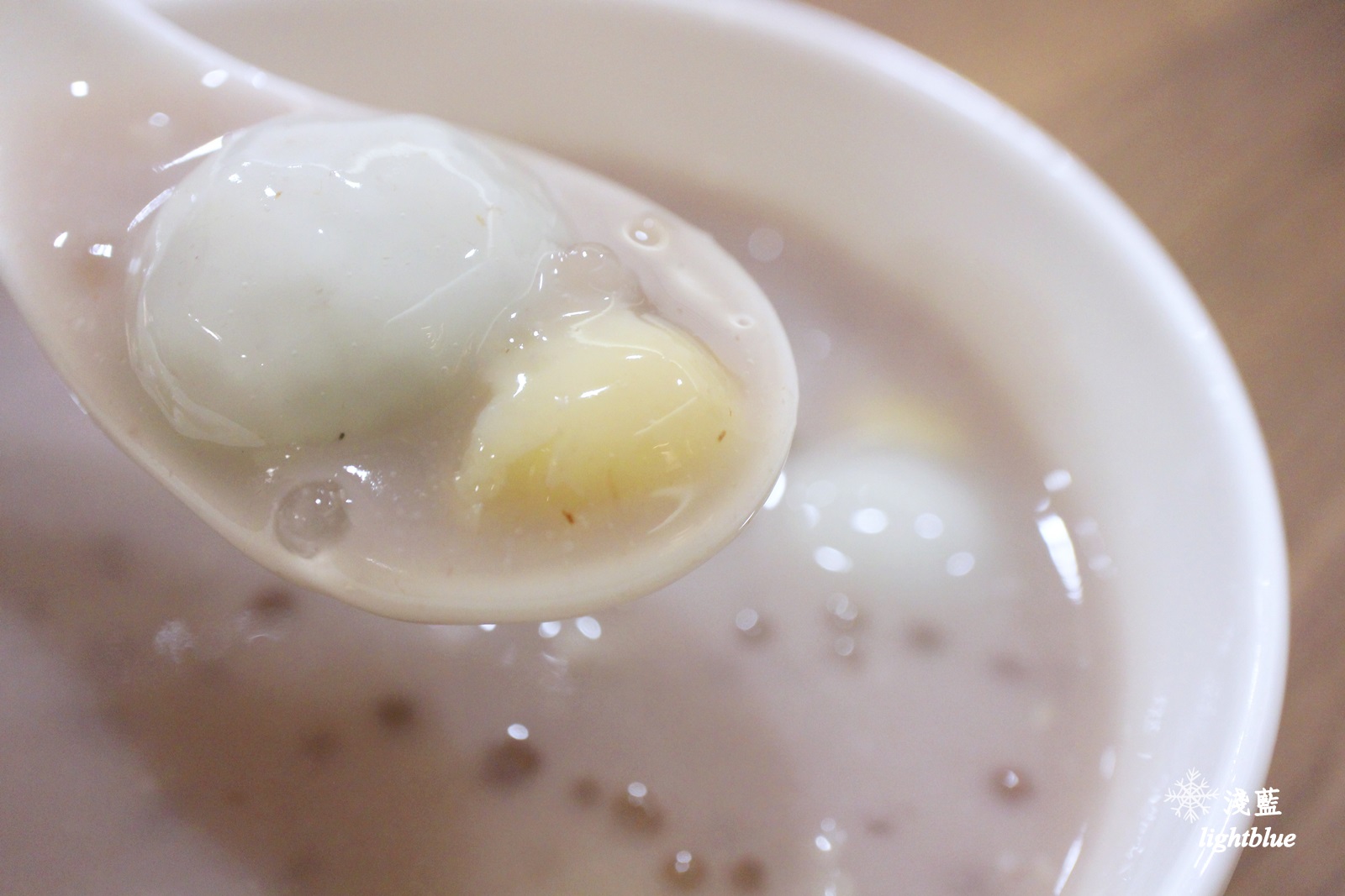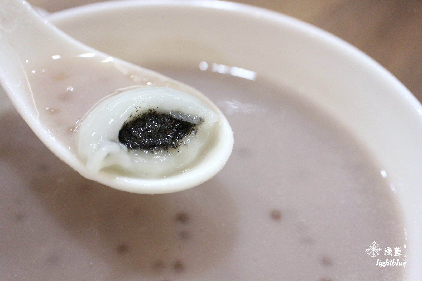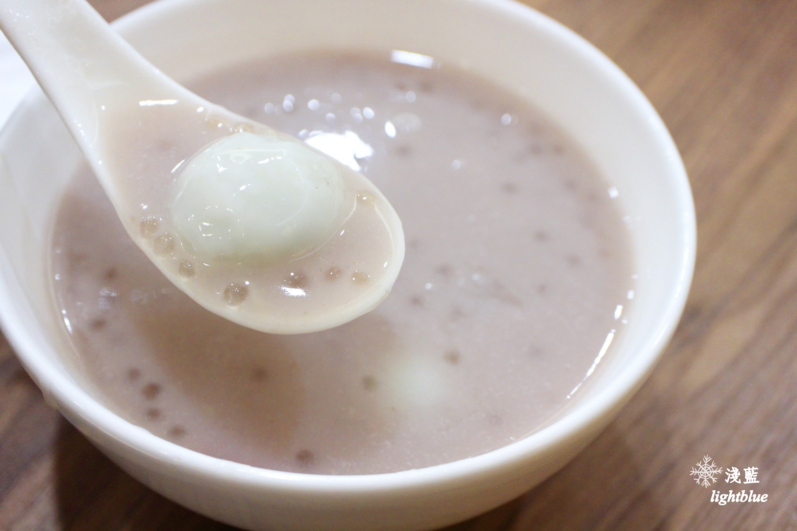 這是芋茸蓮子西米露加45元湯圓,甜湯喝起來有濃濃芋頭香,但是沒有粉粉的口感