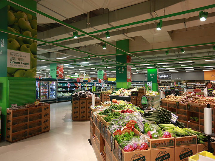 這裡的手推車要投幣喔~100韓圜~