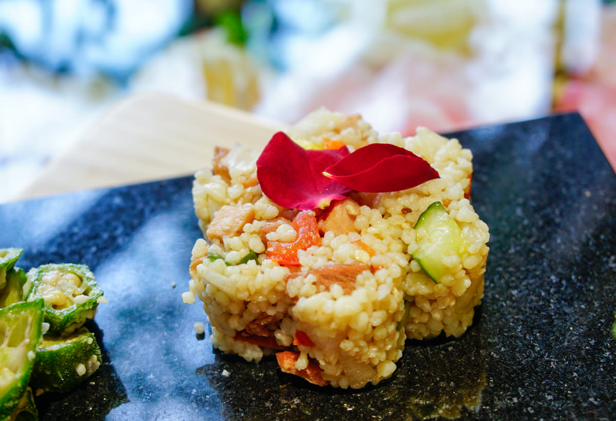 花朵造型的飯糰是北非小米,