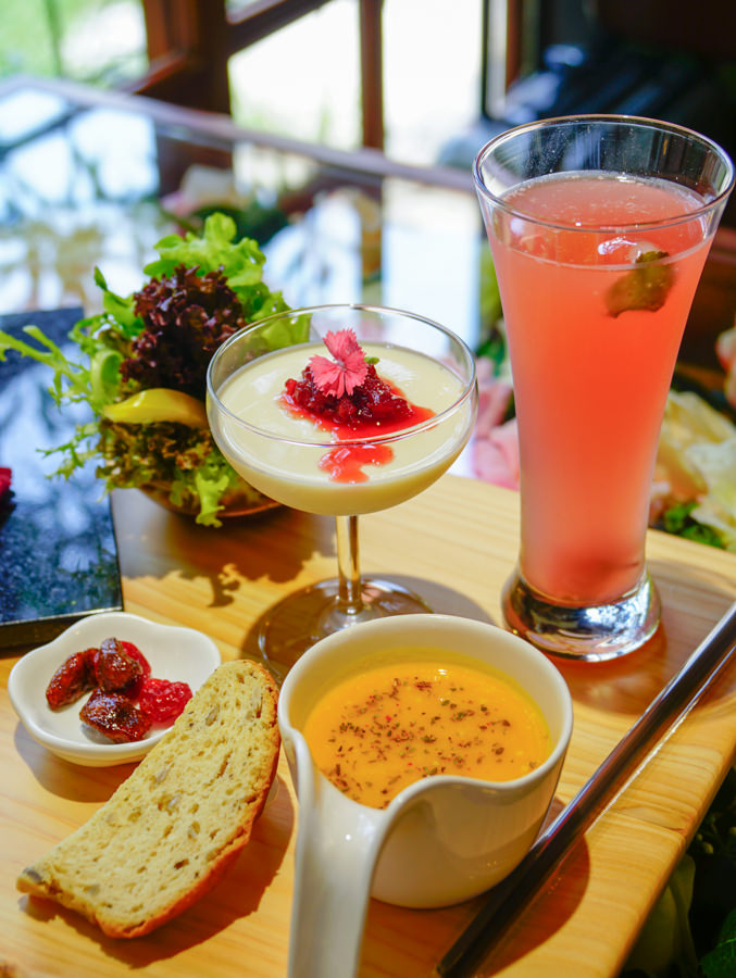 花系套餐端上桌,與綠影窗光