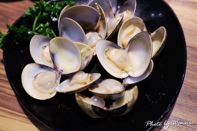 ▲繼續的往中間唱名下去,滿滿的大蛤蠣被四大顆的廣島牡蠣給包圍著,前頭還有生食等級的大干貝、透抽、鯛魚片及鱸魚片,光是用嘴巴念完一輪我都覺得撐了,但別忘了這只是套餐中的海鮮部份阿…待會還有滿滿的兩大盤肉等著我們消滅呢!!