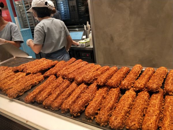 開始排了之後才查詢資料,發現這間【棒棒泡芙Croquantchou Zakuzaku 】是來自東京專門賣泡芙的店,以類似吉拿棒的餅皮包覆卡士達醬或冰淇淋。有【最強街拍甜點】之稱,所以在台灣展店時,從台北台中一路興起排隊熱潮。2017年10月5日進駐高雄漢神巨蛋,就那麼剛好給我們遇到了。