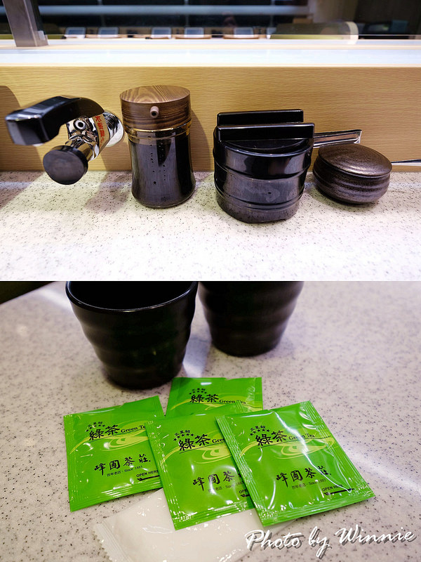 ▲餐桌旁也有放置吃壽司/生魚片很重要的沾醬配料:醬油、薑片及山葵,其中山葵泥看起來就像是新鮮現磨的,非現成包裝的那種