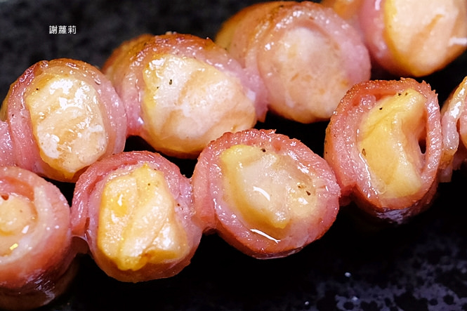 培根與干貝本身就是很完美的組合搭配,干貝嫩口甘甜,而培根因熱度而融出油花與鹹味,不用沾醬、直接吃就很美味。