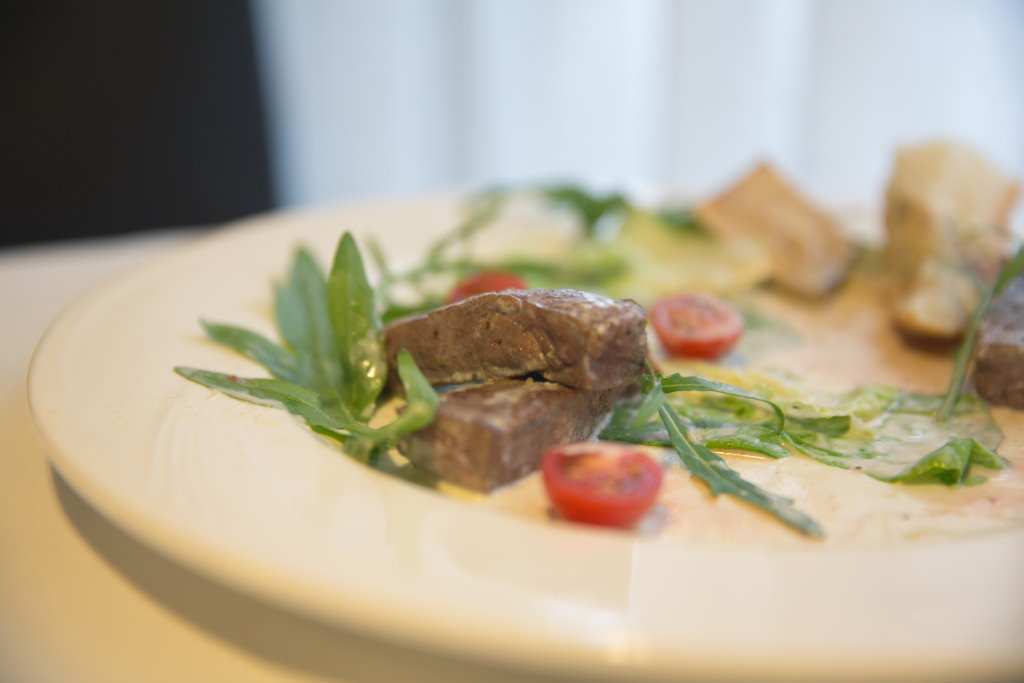 已經切成條狀的牛排,和藍紋起司緊密融合,濃厚的牛肉香和藍紋氣味相稱,找不到詞彙好好形容這滋味,若是吃膩總是一大塊牛排放上桌的你,可以來試試看揮別炸蒜片、牛排醬汁的新穎吃法