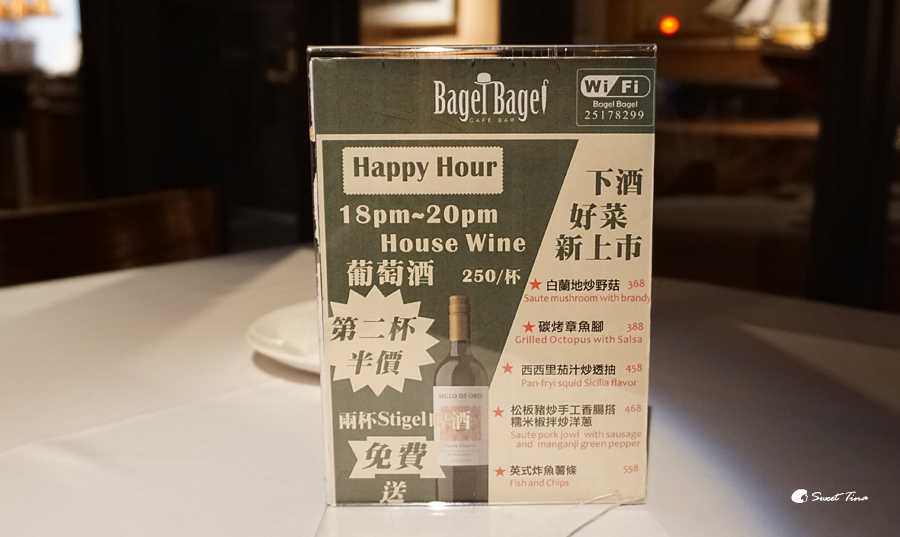 第一次探訪BagelBagelCafe Bar時讓我有種神祕的驚喜感,走進地下室像是走進另一個國度似的,英倫地窖優雅風格相當迷人,每一處都吸引著我去探訪,來這兒絕對會讓你的相機無法休息,因為每一處都好好拍啊,不拍個一百張不擺手XD。而餐廳除了提供早午餐,義式料理,也有各種下酒的療癒料理,在英倫風的氣氛下享受著一道道美味的餐點實在太幸福囉。