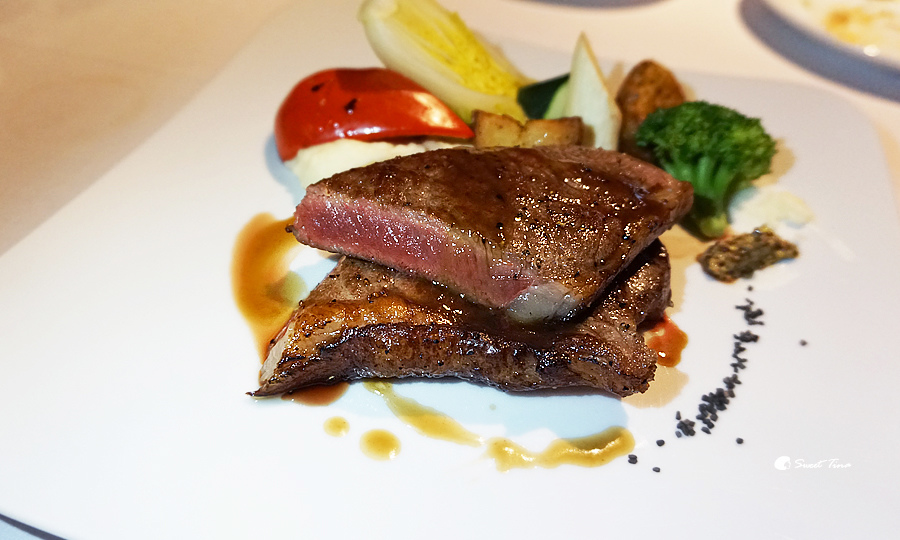牛排一樣均衡的搭配多樣蔬菜,而碳烤後的牛排不僅有碳香味,內層還保有鮮嫰的口感。