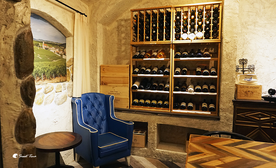 一旁座落一大一小的吧檯,坐在一旁小酌還滿不錯的,看著架上滿滿的紅酒,真的會讓人想來一杯XD~