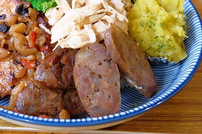 這樣滿滿一盤、色香味俱全,光看就覺得很滿足,自己最愛手工香腸,再來是雞肉絲,它們家的便當認真來說表現真的相當不錯,主菜本身就出色,但配菜卻也絲毫不遜色,像簡單的炒菠菜也很好吃呢!