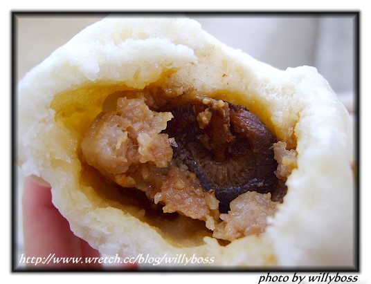 跟克林相比,肥肉的比例較少,用料很接近,也是香菇、蛋黃;肉汁較多,一口咬下香味四溢,包子皮是老麵製作,所以也比較有口感和麵香,算是相當不錯的肉包囉!不過本人對包子比較嚴格,所以會想說那麼得來不易的肉包應該是更好吃的,有點小失望,下次去嚐嚐彰化鹿港的阿振和老龍師比較一下吧!