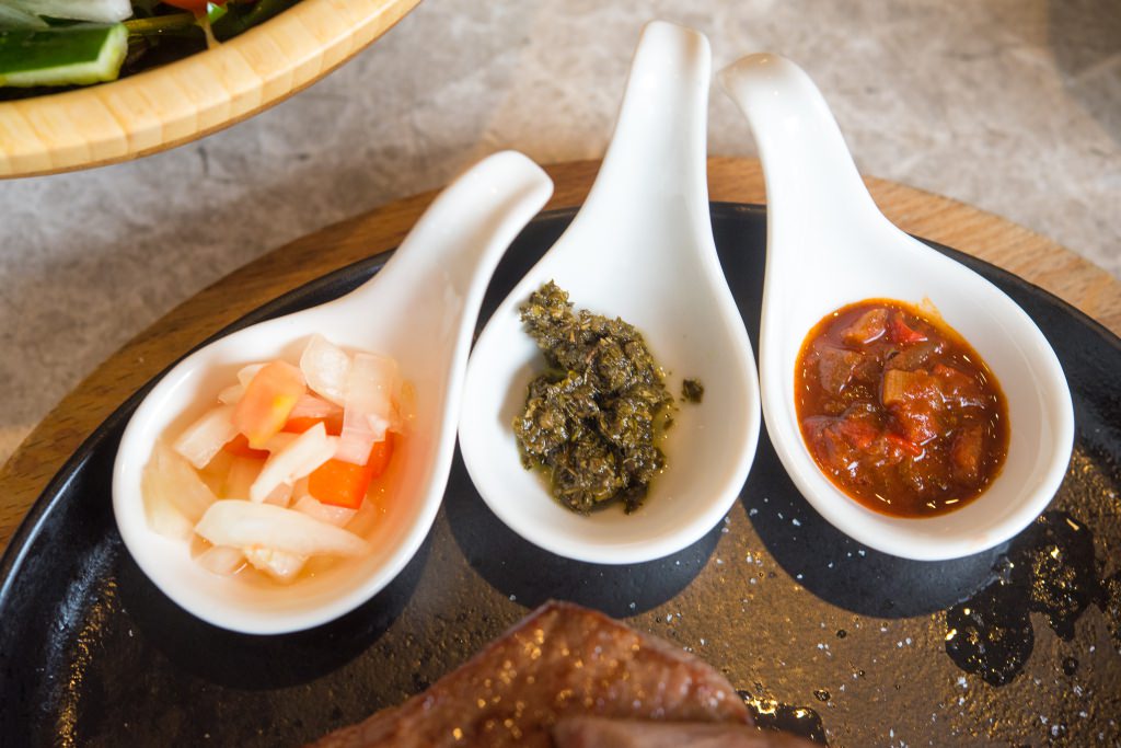 左邊開始是阿根廷莎莎醬 阿根廷烤肉醬 甜椒醬