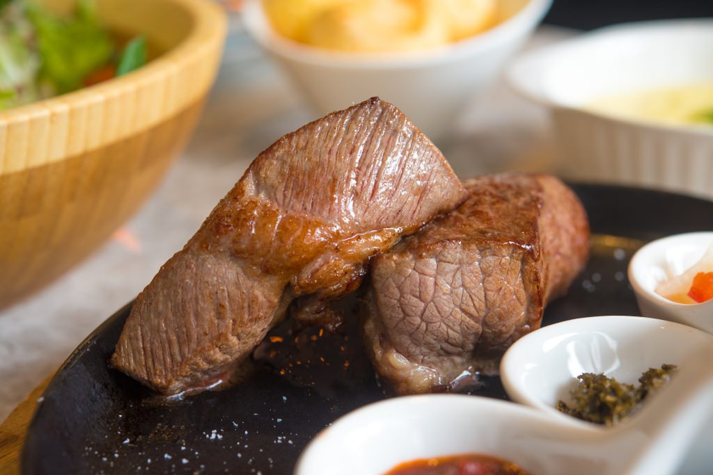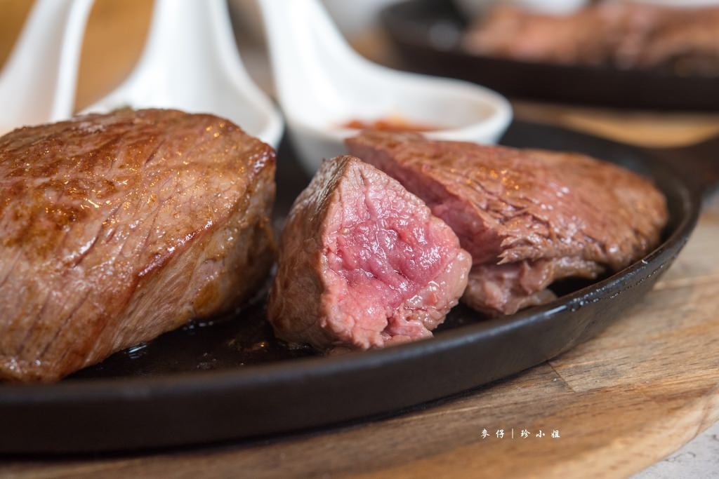 這款沙朗部位帶點肉筋,切的時候要稍微費點力